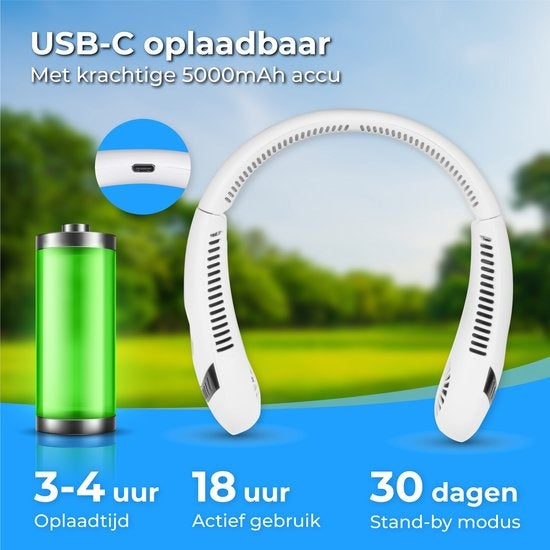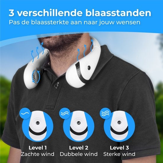 Nuvance - Ventilateur de nuque - Ventilateur de nuque - 3 niveaux - Ventilateur de nuque rechargeable - Ventilateur de visage - Ventilateur de nuque