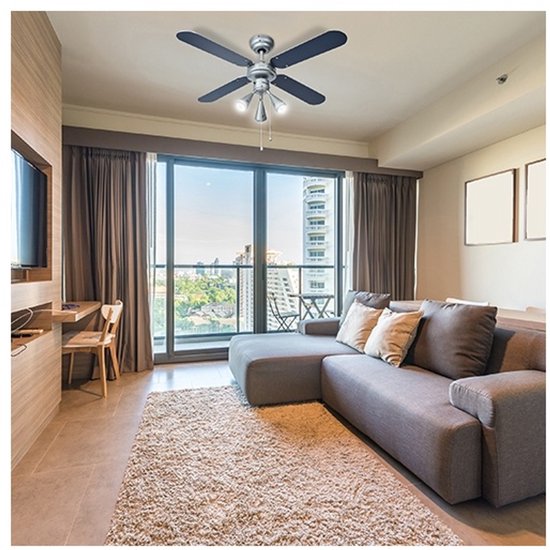 - 3 lumières avec un interrupteur à cordon pour l'éclairage - peut également être utilisé sans ventilation, et 4 pales bicolores qui peuvent être montées de chaque côté pour tout style d'intérieur