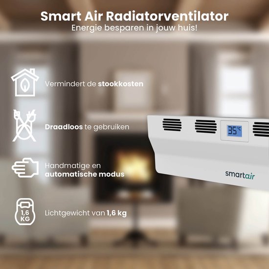 Ventilateur de radiateur - SmartAir - Répartiteur d'air chaud - Universel - Économe en énergie - Sans fil - Blanc