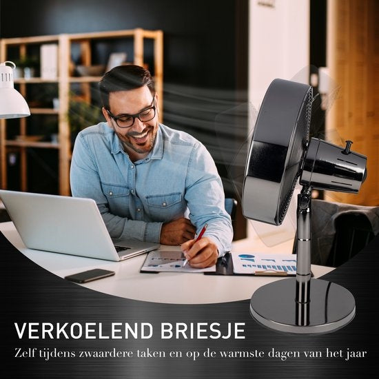 Ventilateur de table Lifetime Air - 230V - Ventilateur de bureau 30CM - 3 vitesses - Fonction oscillante - Inclinaison - Noir