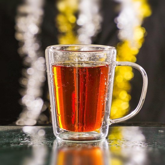 La conception à double paroi avec effet thermique garantit que le contenu des verres à thé reste chaud ou même froid nettement plus longtemps que les verres ordinaires. Cette caractéristique isolante vous permet de déguster vos boissons confortablement, sans condensation sur le verre lors de boissons froides. Idéal pour les journées chaudes et froides.