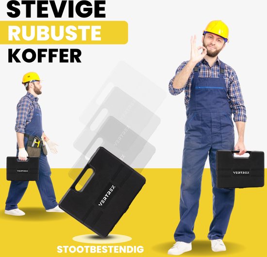 Mallette à outils Vertrex remplie - Outils - Set d'outils - Mallettes à outils - Set de tournevis - Ruban à mesurer - Marteau - Tournevis - Couteaux Stanley - Clé à molette