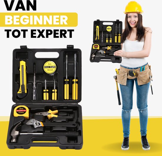 Cette boîte à outils est proposée dans une boîte en plastique ABS robuste et résistante aux chocs. Tous vos outils organisés en un seul endroit, facile à transporter et à ranger.