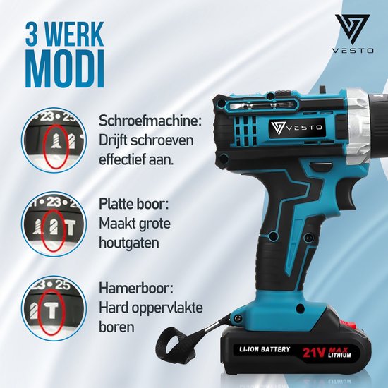 Vesto® PowerDrive Cordless Drill - Tournevis sans fil - Perceuse - Tournevis - Perceuse sans fil - 2 piles incluses