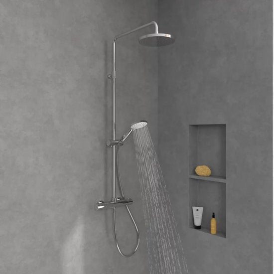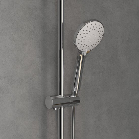 Profitez d'un système de douche complet, incluant une douche de tête effet pluie pour une relaxation totale et une douchette à main 3 jets de 110 mm pour une personnalisation maximale. Le mitigeur thermostatique intégré garantit une température constante pour un confort accru, tandis que le flexible de 1600 mm assure une grande liberté de mouvement.