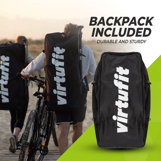 Avec la VirtuFit Supboard, vous pouvez expérimenter le Stand Up Paddling (SUP) en toute sécurité et avec beaucoup de plaisir. Vous êtes relativement à l'aise sur l'eau et la planche vous apporte la stabilité dont vous avez besoin. La Supboard est livrée avec une gamme d'accessoires utiles :