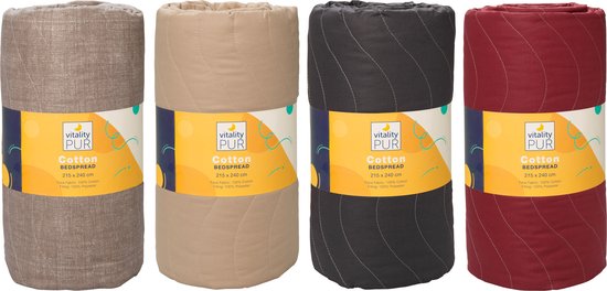 Vitality Pur - Couvre-lit en coton de luxe - 2 personnes - Bleu/Rouge - 240x215