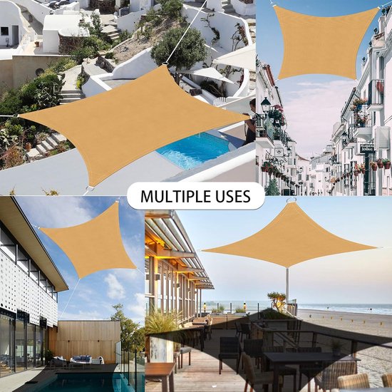 Voile d'ombrage rectangulaire - Protection UV - 1 pièce - Sable - 2x3m