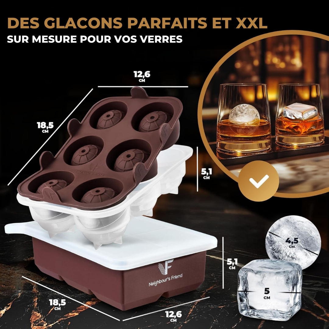- DIMENSIONS IDÉALES: La machine à glaçons XXL brevetée produit des boules de glace rondes de 4,5 cm, et le moule à glaçons produit des glaçons carrés de 5 cm qui fondent lentement pour offrir la meilleure expérience gustative.