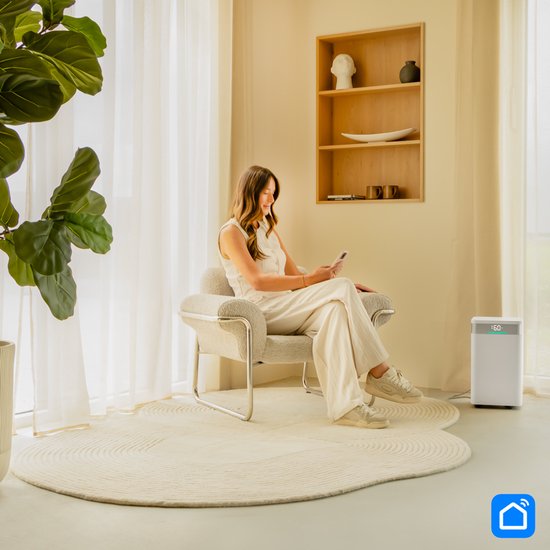 En raison de ses dimensions compactes (30,5 × 26,5 × 50 cm), de ses roulettes et de son contrôle Wi-Fi via l'application Smart Life app, le DF502AC est à la fois facile à déplacer et à utiliser.