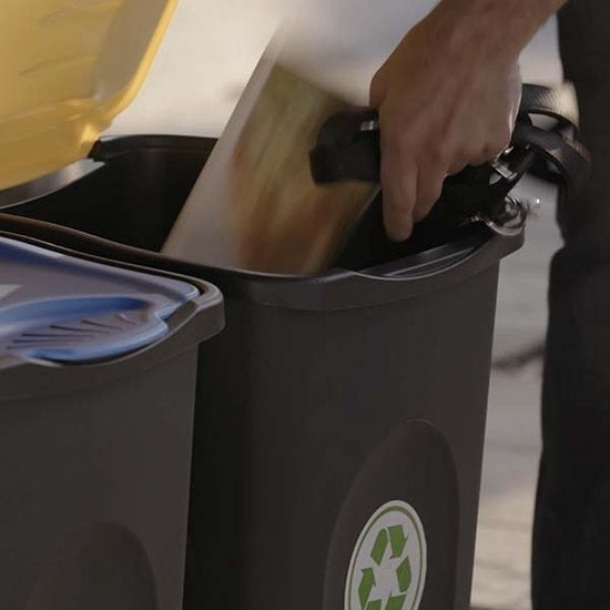 La poubelle pratique a une capacité de 50 litres et est équipée d'un couvercle.