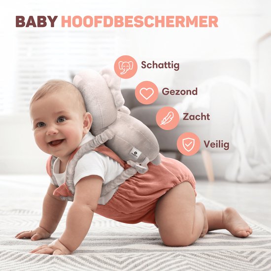 Vulpes Goods® BabyCare - Coussin de tête pour bébé - Oreiller de sécurité pour bébé - Sac à dos pour les chutes - Respirant en 3D - Apprendre à marcher en toute sécurité - Éléphant