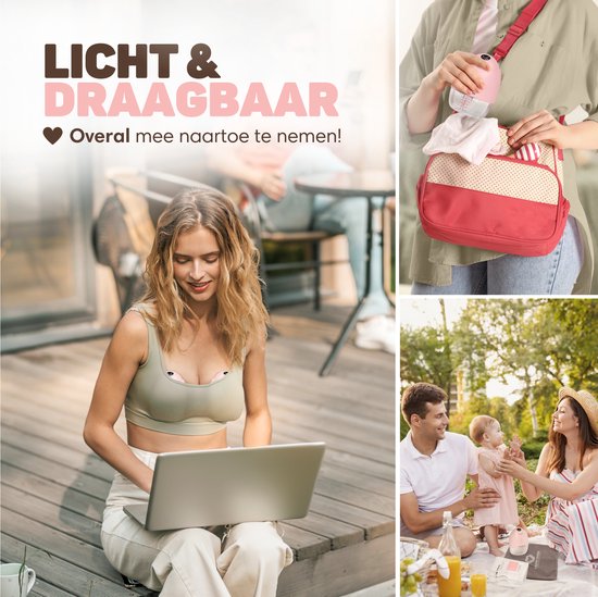 Le tire-lait est très compact et facile à emporter avec vous, pour que vous puissiez tirer le lait à tout moment, n'importe où. Grâce à l'écran LED pratique, vous pouvez facilement régler vos modes préférés, contrôler l'aspiration et vérifier le niveau de la batterie. Le tire-lait est si compact qu'il s'adapte parfaitement à votre sein, spécialement conçu en fonction de vos souhaits en tant que (future) mère. En outre, le tire-lait est exempt de BPA et ne contient donc aucune substance nocive ou toxique.