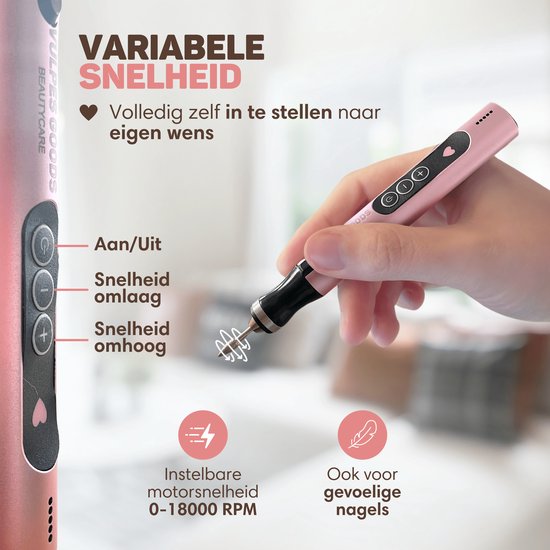 Vulpes Goods® BeautyCare - Lime à ongles électrique - sans fil et rechargeable - 11 fraises à ongles, 96 rouleaux de ponçage et sac de transport - Set de manucure et de pédicure - Version PRO