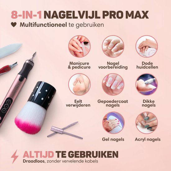 De plus, cette lime à ongles innovante est entièrement sans fil et rechargeable. Vous n'avez plus à vous soucier des fils et des cordons gênants. Vivez l'expérience unique que vous offre notre lime à ongles électrique PRO.