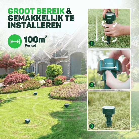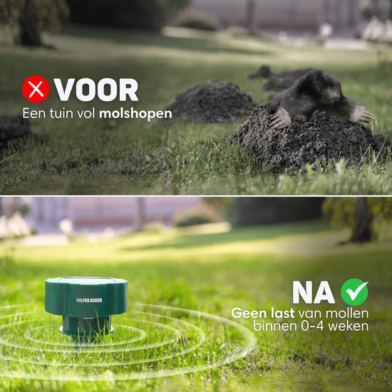 Vous êtes souvent dérangé par des taupes ou des souris dans votre jardin ? Cela peut être frustrant, mais chez Vulpes Goods® Repellent, nous avons la solution parfaite ! Sur la base des commentaires de nos précieux clients, nous avons mis au point le nouveau répulsif à taupes PRO V2 qui, à l'aide d'ultrasons et de vibrations, chasse les taupes de votre jardin, afin que vous puissiez profiter d'une belle pelouse bien entretenue !