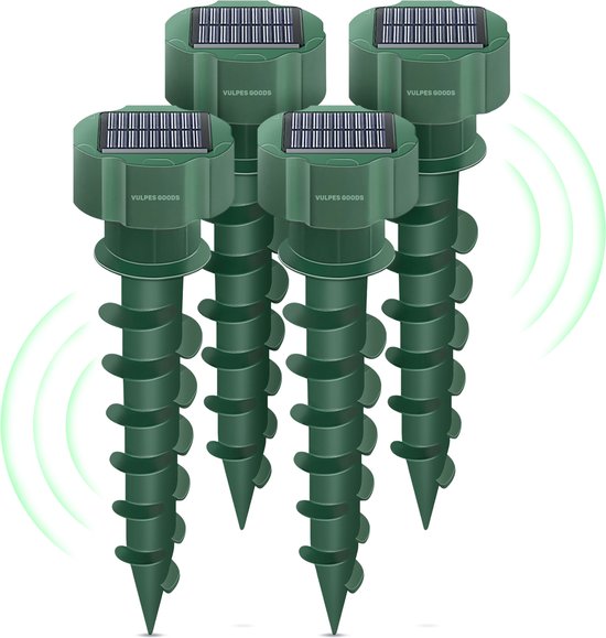 Vulpes Goods® Repellent - Répulsif à taupes - 4 pièces - Répulsif à souris - Contrôle des taupes - Alimenté par énergie solaire - Imperméable - Respectueux des animaux - PRO V2
