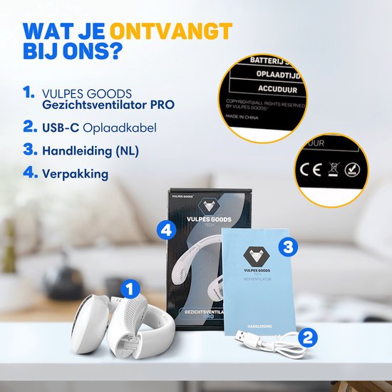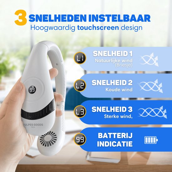 Vulpes Goods® Tech - Ventilateur de cou - Ventilateur de visage portable - Ventilateur USB - Mini ventilateur - Rechargeable - 3 positions - Version PRO