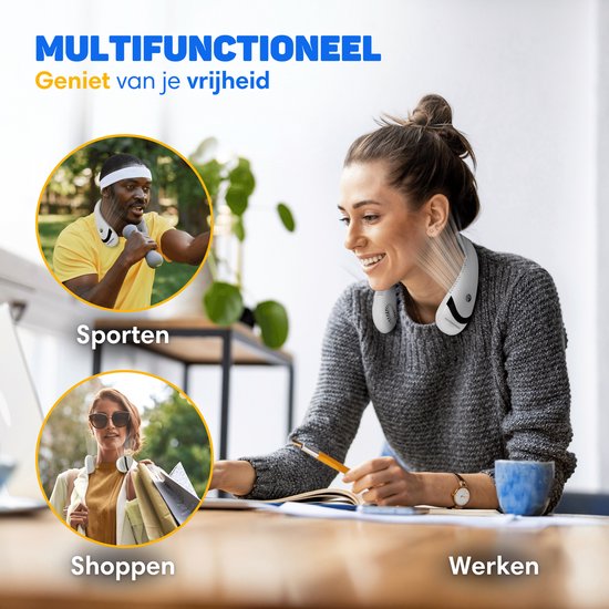D'une taille de 21x21x6 cm, le ventilateur est très compact, ce qui permet de l'emmener facilement partout. De plus, ce ventilateur de cou de haute qualité ne pèse que 245 grammes. Il se glisse parfaitement dans votre sac d'école, votre sac à main ou votre sac de sport, de sorte que vous pouvez vraiment l'utiliser partout où vous allez !