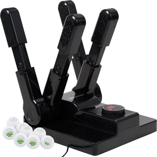 Un sécheur de chaussures multifonctionnel qui vous permet de sécher jusqu'à 4 chaussures (à main) simultanément. Ce séchoir est parfait pour divers matériaux, tels que les chaussures de sport, les bottes, les chaussures de travail, les chaussures de ski, les chapeaux, les gants et plus encore ! Le séchoir à chaussures est parfaitement adapté à diverses activités, telles que le football, la boxe, les sports d'hiver, le travail, etc.