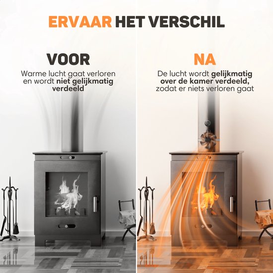 Le ventilateur disperse l'air chaud provenant du chauffage dans la pièce. Au lieu que l'air chaud monte au plafond ou s'attarde simplement autour du poêle. Le poêle ne produit aucun bruit gênant et est incroyablement facile à installer. Grâce aux 5 pales silencieuses du ventilateur, vous ne subirez aucune nuisance sonore lorsque vous utiliserez le poêle. Grâce aux pales efficaces, 20 % d'air chaud en plus pénètrent dans la pièce.