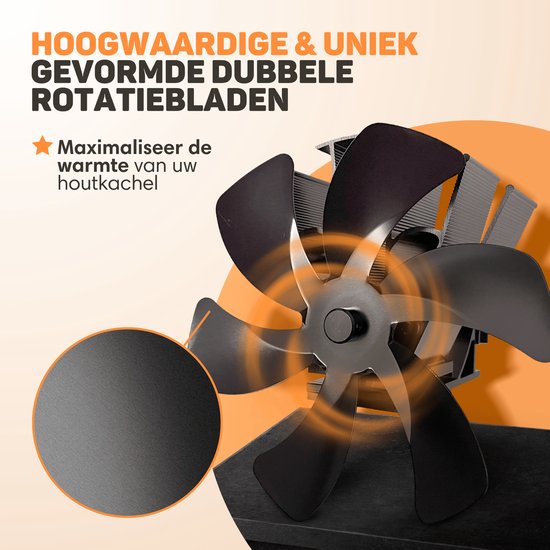 Vulpes Goods® Tech - Ventilateur de poêle à bois - Ventilateur de cheminée - Ecofan - Ventilateur de chaleur - 6 pales - Thermomètre et gant inclus - version PRO