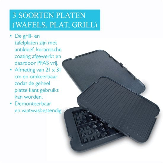Les plaques de gril et de table incluses sont recouvertes d'un revêtement en céramique et sont donc exemptes de PFAS. Elles sont facilement amovibles et réversibles et peuvent être nettoyées au lave-vaisselle. Les plaques de gril sont également dotées d'un système pratique d'évacuation des graisses avec un bac de récupération, ce qui permet de garder le gril de contact en céramique Wartmann propre en toute simplicité.