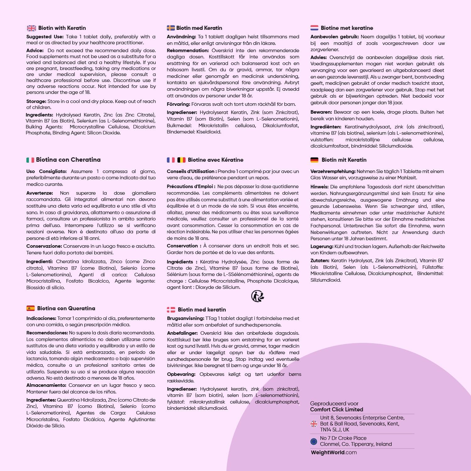 WeightWorld Biotin, Zinc, Selenium & Keratin Comprimés - 400 Micro-comprimés végétaliens (Ø 6 mm) - 1+ Year Supply - 15 mg Zinc & 25 mg Keratin