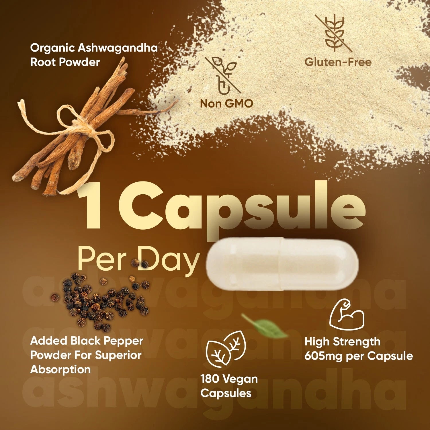 WeightWorld Potent 1200mg Ashwagandha Capsules - 180 Capsules, Organic, High Dose, With Black Pepper,