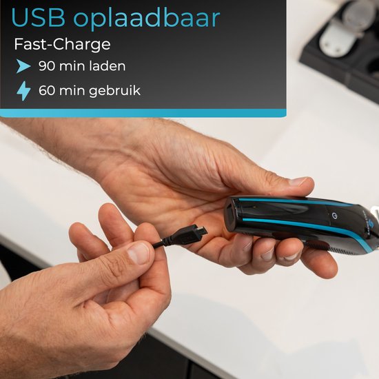 Avec cette tondeuse à barbe et ce toiletteur corporel polyvalents, vous pouvez tailler votre barbe et votre corps comme vous le souhaitez. La tondeuse est équipée de 5 accessoires différents et d'une batterie puissante qui offre une heure d'utilisation sans fil. La tondeuse et les accessoires peuvent être facilement rangés dans le support pratique inclus. De plus, le sac de voyage inclus vous permet de tout emporter avec vous. Grâce à la batterie puissante et à la liberté sans fil, vous pouvez tondre n'importe où. La tondeuse à barbe Wellshave® 5-en-1 Iced V2 offre le soin parfait pour votre apparence.