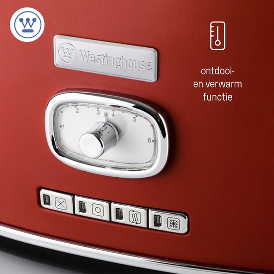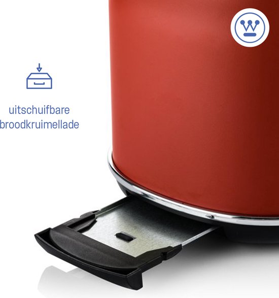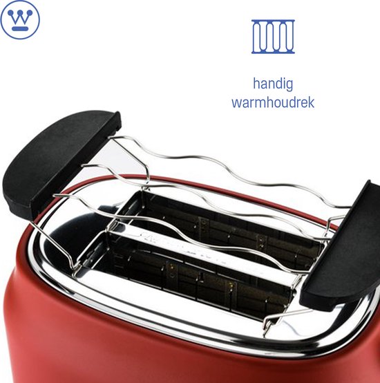 Grille-pain rétro Westinghouse - 2 tranches - fentes extra-larges - grille de maintien au chaud - 815W - rouge