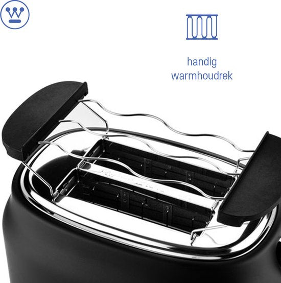 Grille-pain rétro Westinghouse - 2 tranches - fentes extra-larges - grille de maintien au chaud - 815W - noir