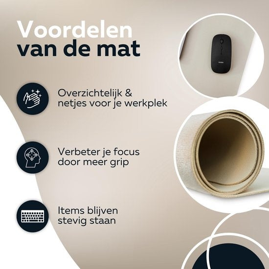 Sous main - WURK Professional Desk Pad Leatherette - Organisateur de bureau - Inclut un clip pour câble - Beige - 80x40