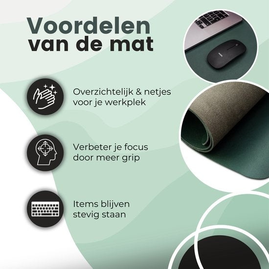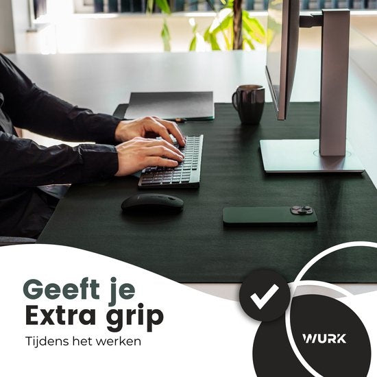 Tapis de bureau professionnel WURK - cuir synthétique - Organisateur de bureau - Accessoires de bureau - Comprend un clip pour câble - Tapis de souris XXL - 120x60 - Vert