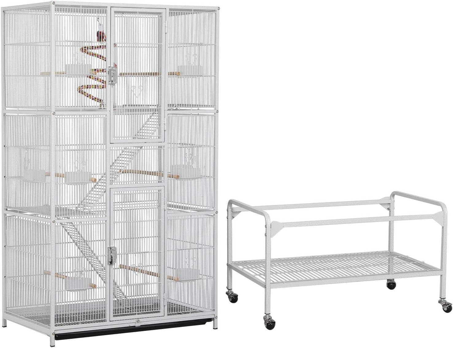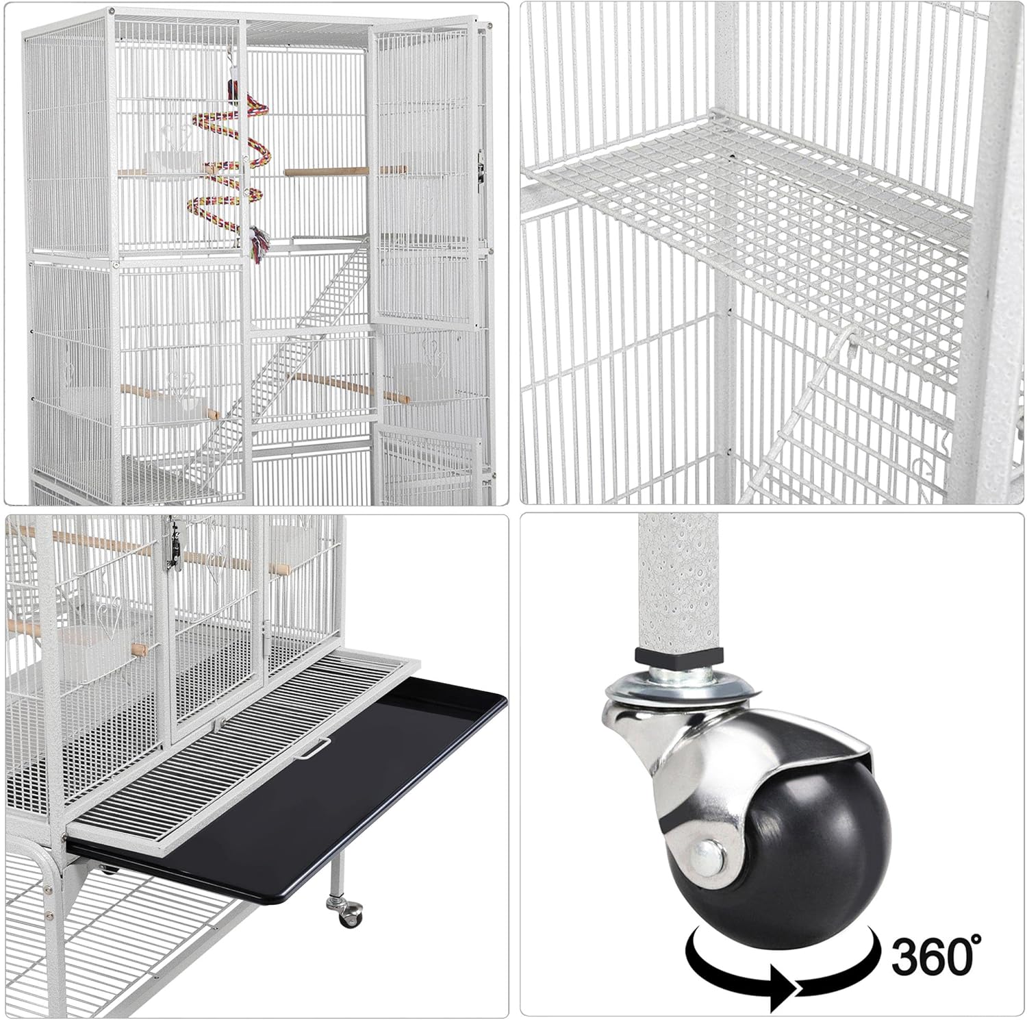 Yaheetech 175 cm Cage à oiseaux extra large avec support amovible pour perroquets de taille moyenne, perruches, perruches faucons, conures, inséparables, perruches à gazon et pinson - Blanc