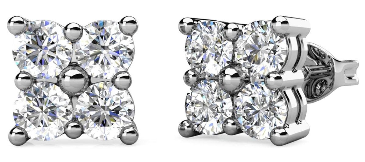 Boucles d'oreilles pour femmes Yolora avec des cristaux Kalpa Camaka authentiques. Ces boucles d'oreilles carrées sont plaquées en or blanc 18 carats.