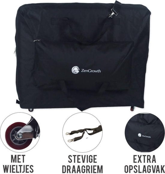 La ZenGrowth Nimman est une table de massage pliante de haute qualité développée en collaboration avec DeMassageWinkel. Avec un poids de 19 kg et une stabilité inégalée, la ZenGrowth Nimman peut fonctionner parfaitement comme table de massage fixe dans un cabinet de massage, ainsi que comme table de massage mobile pour les professionnels travaillant sur place.