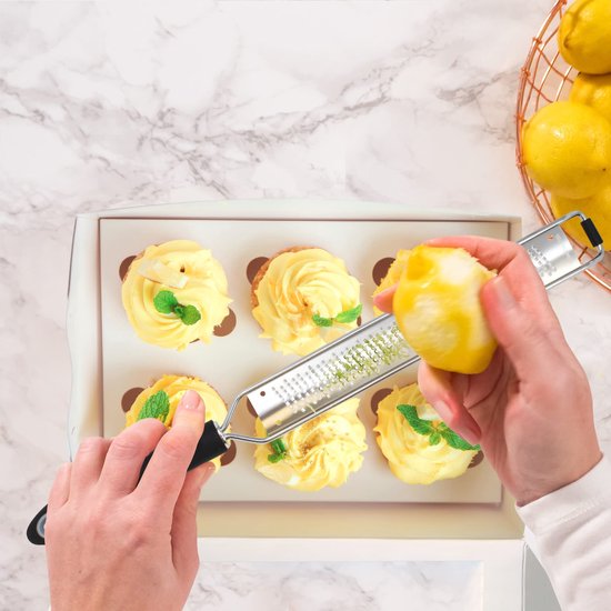 - Râper sans effort - Grâce à la précision de coupe de notre micro-râpe, vous pouvez faire des boucles extra-fines au goût concentré en un rien de temps. Votre écorce de citron ne contiendra que le zeste coloré, laissant derrière elle la moelle amère.