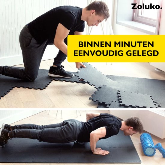 Vous cherchez un moyen rapide et facile de poser un sol protecteur dans votre maison ? Avec les tapis puzzle Zoluko Sport, cela devient possible ! Amenez la salle de sport chez vous sans déranger vos voisins ou le sol en dessous. Ces tapis puzzle sont fabriqués en mousse EVA insonorisante, ont un revêtement antidérapant et sont imperméables. Assemblez les dalles comme vous le souhaitez et commencez votre entraînement!