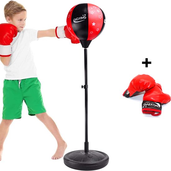 Ballon de boxe sur pied pour enfants Zoluko - Gants de boxe et pompe gonflable inclus - Hauteur réglable - Pour l'intérieur et l'extérieur - noir/rouge